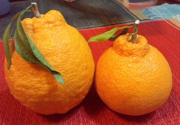 向かって右は普通サイズのデコポン 左はでっかいサイズ でっかいのばっかりというわけにはいきません |