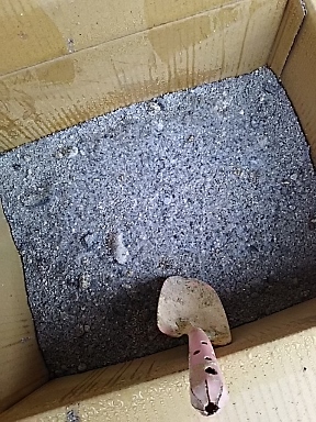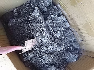 写真でははっきりわかりませんが 段ボールに種を入れた翌日からポカポカ発酵が始まり 混ぜ返すと湯気が立ち上ります 段ボールは露にぬれてベッタリ |