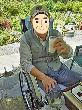 新緑と青空の下でハーブティーを飲んでみたいと仰るので レモンバームとミントに、咲き始めた深紅の薔薇を混ぜて ハーブティーを淹れました ハーブティーがお好きなオジサンたちでよかった! ![]() |