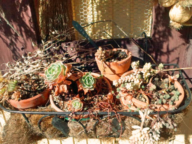 お店のスタッフのTさんの手で こんなに素敵な盛り篭になりました 山を下りたハーブたち さぞ晴れがましい気持ちでいることでしょう |