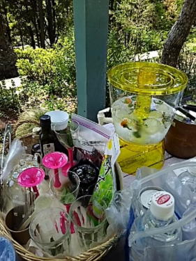 ドリンク類は 各種取り揃えてお待ちしました ミネラルウォーターにハーブ入りの 氷を浮かべたドリンクサーバーも 出番を迎えました |