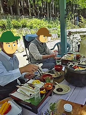 三人で楽しくお喋りしている間 黒子に徹するBは火を起こしたり、豆ご飯を炊いたり 写真を撮ったり大忙しでした(いつもお世話になってます) たいしたおもてなしもできませんでしたが |