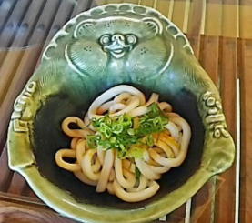 信楽焼のタヌキの鉢に入った 伊勢うどんが出てきたときは ちょっと度胆を抜かれました! |