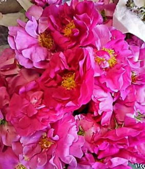 一斉に咲きだすと 一本のロサ・ガリカから一度に これくらいの花が採れます これくらい採れるのは あと三回くらいかなー |
