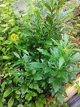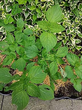 オメガ3が豊富に含まれると聞いては エゴマ、育ててなくっちゃ! 3年ほど前に種を蒔いて育った苗から 毎年こぼれ種であちこちに芽を出しているのを 今年は一ヶ所に集めて、エゴマの畑を作りました エゴマの葉っぱは虫たちにも美味しいらしくて いつも穴だらけになってしまいますが、今年はまだ大丈夫 |