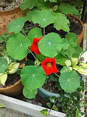 定番のオレンジの他に、ナスタチュームの花いろは様々 花も葉っぱも食べられます |