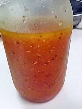 赤玉葱をすって ドレッシングに入れると 美味しそうなピンク色に りんご、生姜、ニンニクも入れます |