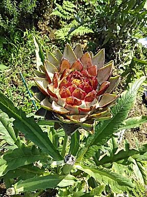 なんと! しばらくぶりに山のハーブ畑に登ってみたら アーティチョークが花を咲かせる直前の姿になっていました 苗のためにはよくないのですが、ここまでいけば花が見たい! |