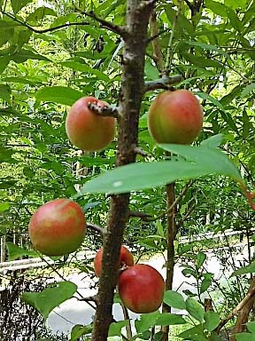 これは? 今年初めて梅の実がなって 黄色く色づき始めたなーと思っていたら なんと! だんだん赤くなってきました はっきりとした記憶がないのですが・・・ たぶん・・・ |