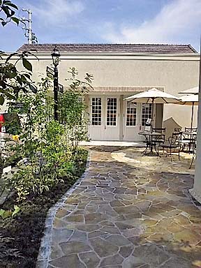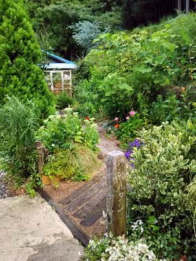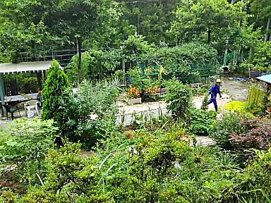 春には花盛りだった庭も木がのびて 濃い緑の庭に |
