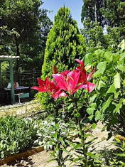 大きな目玉焼きみたいな黄色い百合は つい最近咲き出しましたが もう少し前には赤いのとピンクのも |