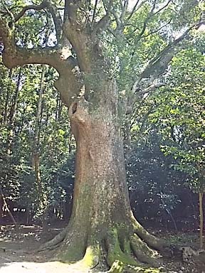 鳥居をくぐると、樹齢は三百年以上とされる 大きな楠木に驚かされます |