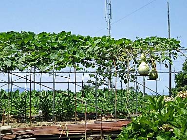 下機殿のまわりで作られていた デッカイひょうたん! これほどの大きさのひょうたんを見たことがなかったので |