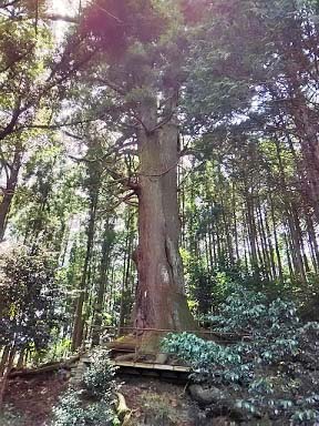 しめ縄が巻かれた御神木の夫婦杉 |
