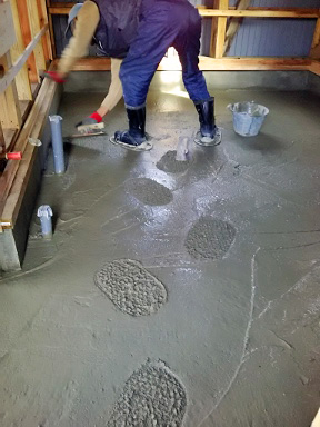 鏡のような土間の完成 ![]() 1週間ほど乾かすと白いコンクリート色に変わるそうです (こんな青っぽいままのもいいですが、何しろコンクリートなので・・・) |