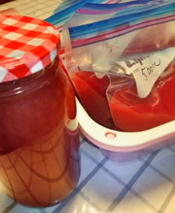 紅玉の皮と芯からペクチンを取ります 農薬を気にしないでリンゴを丸ごと使えるのも 今年からご縁ができた青森の減農薬りんごのおかげ たっぷり取れたペクチンを冷凍しておけば 好きなときにいつでもリンゴジャムが作れます |