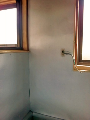 最大の難関&メンドクサイ仕事は コンセントを鋼板を突き抜けて 上に出さなくてはいけないこと 鋼板を壁紙みたいにペタペタ張っていくだけなら 簡単なのですが・・・ |