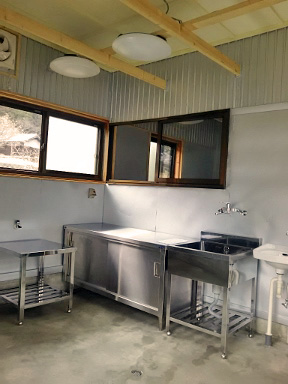 厨房機器を扱っているお店で調達したシンクとガスレンジ台 戸棚付の作業台を取り合えず置いてみました まだ内装のペイントが一部残っていたり |