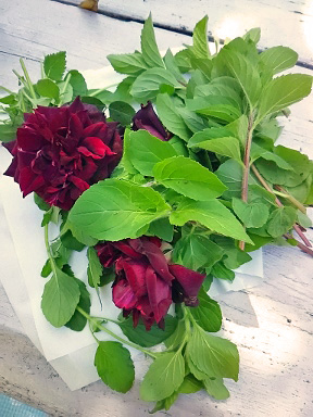 薔薇とミントを初採り あとでレモンバームもたくさん採りました |