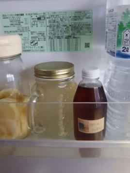 初採りハーブでミントシロップとレモンバームレモネードを作って 冷蔵庫に保存しておきました |