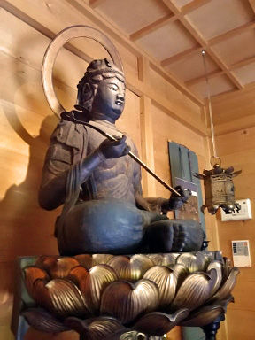 平安時代の作とされる普賢菩薩 うずくまった白象の上に座しておられます (Y美さんのお母様の丁寧な説明によると お釈迦様の両脇にはいつも普賢菩薩と文殊菩薩が脇侍として控えておられ 白象の上に普賢菩薩、獅子の上には文殊菩薩と決まりがあるのだそうです) |