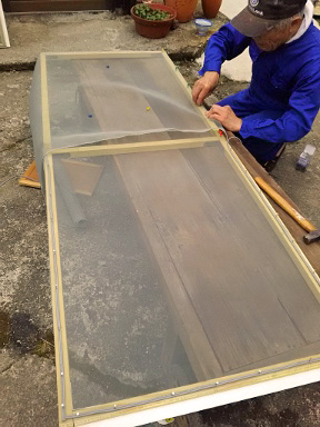 既にガタがきている天井を補強するために 何本か燦を入れに、Mちゃんが 仕上げの工事に来てくださいました |