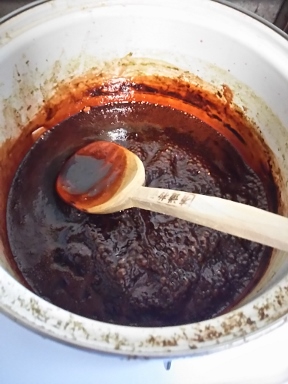 そんなこんなを経て・・・ 鍋にほとんど一杯出来たジュースを弱火で煮詰めていけば |