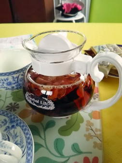 オジイさんには出さない ローズティーとお花の中国茶でお迎えしました |