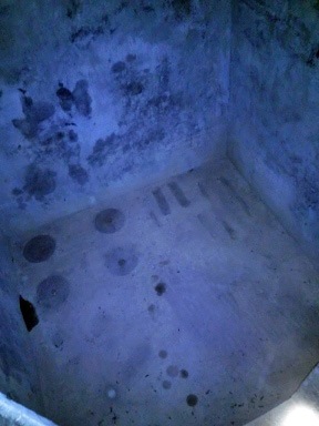まるで古墳の石室のような! 戦後10年くらい経ってから作られた 地下の食糧庫があるとは聞いていましたが まさかこんなに広いとは! 広さは一坪ほど、高さは二メートルほどで 人力で掘られたものというのは驚きです |